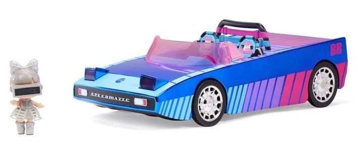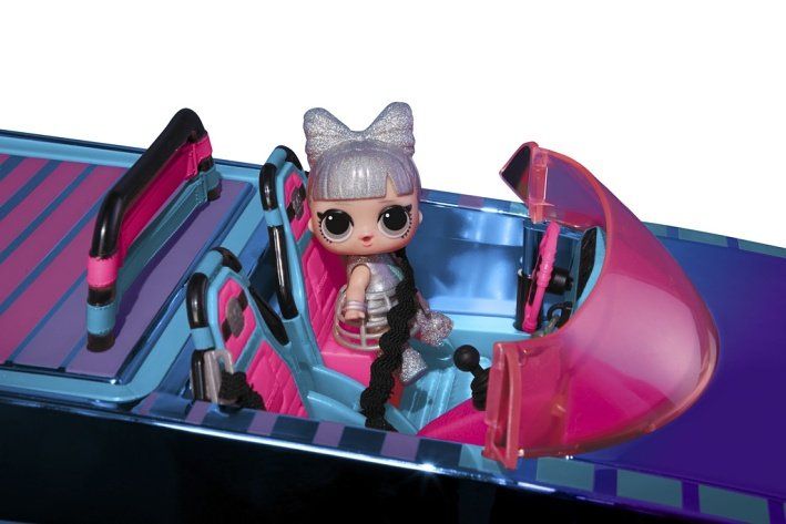 V L.O.L. Surprise! Dance Luxusním autě ve futuristickém designu s metalickým modrofialovým povrchem můžou jezdit všechny L.O.L. panenky a OMG Velké ségry. Zadní část auta můžeš rozložit na taneční parket a bazén. Auto má fungující přední světla, která odhalí neonová překvapení. Obsah balení: • stylové auto v modro-fialové metalíze • 1 exkluzivní panenka Danceboat • 3 v 1: auto, taneční parket a bazén • plně funkční přední světla auta září UV světlem a ve tmě nebo v přítmí odhalí neonová překvapení, např. na panenkách • bezpečnostní pásy, sklopná zrcátka, držák nápojů, láhev, otevíratelná přihrádka pod palubní deskou • nastavitelná sedadla, aby se mohly v autě svézt i OMG Velké ségry