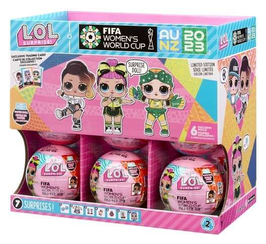 Připrav se rozehrát to na fotbalovém hřišti díky partnerskému projektu s Mistrovstvím světa v ženském fotbalu v Austrálii a na Novém Zélandu 2023! Představujeme limitovanou edici L.O.L. panenek-fotbalistek ze zúčastněných zemí. V balení najdeš 7 překvapení, mezi nimiž je 1 ze 6 panenek . Panenka bude z Austrálie, z Nového Zélandu nebo z další ze soutěžících zemí. Když dáš panence napít vodu, může plakat nebo plivat; některé po ponoření do ledové vody mohou změnit barvu. Sesbírej fotbalistky nebo rozhodčí či fotbalovou fanynku! Obsah balení:? • 1 L.O.L. panenka z limitované série • 1 – 2 módní doplňky • 1 pár bot • 1 lahvička • 2 – 5 doplňků • 1 sběratelská kartička FIFA X L.O.L. Surprise! Velikost L.O.L. panenky: cca 8 cm.