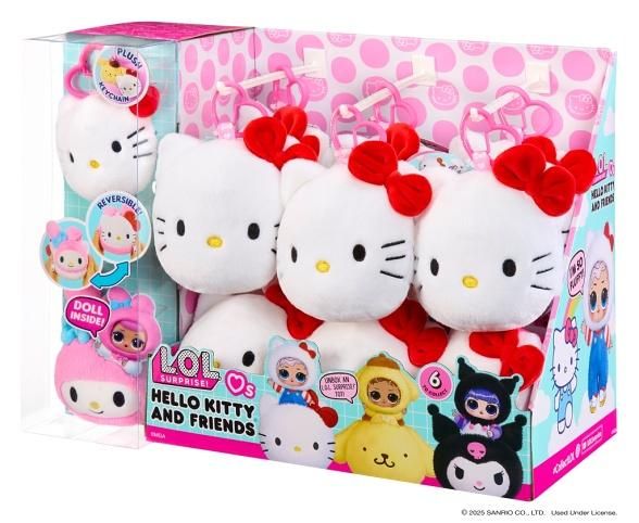 Poprvé v historii L.O.L. Surprise! představujeme PLYŠOVÉ panenky – a to i v plyšových koulích! Objev, co se skrývá uvnitř, a vstup do světa Hello Kitty. Seznam se se 6 panenkami inspirovanými těmi nejikoničtějšími postavami Hello Kitty® and Friends – jako jsou Cinnamoroll, Pochacco, Keroppi a další. Zažij jedinečný unboxing a zjisti, kterou postavičku budeš mít v plyšové kouli právě ty! Plyšová koule se otočí naruby a odhalí druhou plyšovou postavičku. Uvnitř se schovává L.O.L. panenka se stylovými doplňky Obsah balení:? • 1 panenka? • 1 plyšová koule i jako přívěsek na klíče V této sérii můžeš sesbírat 6 postaviček.