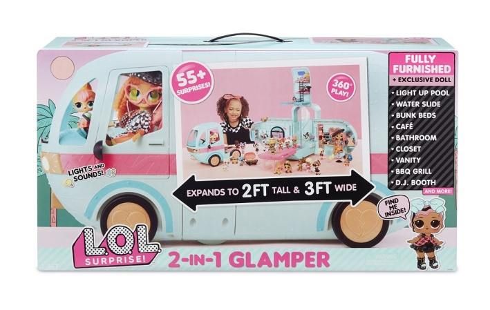 L.O.L. Surprise! Karavan 2v1 je první auto pro tvoje L.O.L. panenky. Rozbal více než 55 překvapení, více než 10 různých hracích ploch a jednu exkluzivní panenku. Zadní část karavanu můžeš rozložit na více než 60 cm vysokou a 90 cm dlouhou plochu, kde si tvoje L.O.L. panenky užijí spoustu legrace. Přední část karavanu jezdí jako samostatné auto. Pozor! Světla svítí, klakson troubí. Všechny doplňky je možné po hraní uložit do karavanu. Obsah balení: 1 Karavan 2v1 (auto je možné oddělit od karavanu) 1 exkluzivní panenka více než 55 překvapení Karavan je vhodný pro celou kolekci L.O.L. Surprise!, včetně O.M.G. Velké ségry.