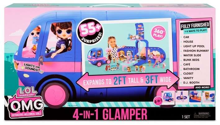 L.O.L. Surprise! Karavan 4v1 je cool auto pro tvoje L.O.L. panenky v nové elektrizující barvě. Rozbal více než 55 překvapení a více než 10 různých hracích ploch. Zadní část karavanu můžeš rozložit na více než 60 cm vysokou a 90 cm dlouhou plochu, kde si tvoje L.O.L. panenky užijí spoustu legrace. Přední část karavanu jezdí jako samostatné auto. Pozor! Světla svítí, klakson troubí. Všechny doplňky je možné po hraní uložit do karavanu. Obsah balení: 1 Karavan 4v1 (karavan, pojízdná kabina, přehlídkové molo, podsvětlený bazén) více než 55 překvapení Karavan je vhodný pro celou kolekci L.O.L. Surprise! včetně OMG Velké ségry. Na baterie: 6x AAA (jsou součástí balení)
