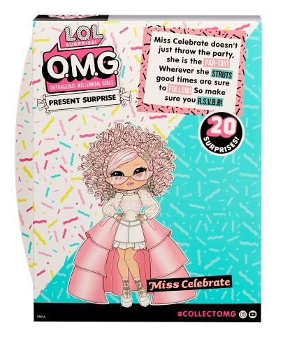 Rozbal módní panenku L.O.L. Surprise! OMG Narozeninovou Velkou ségru Miss Celebrate s více než 20 překvapeními! Zkombinuj její oblečky a vytvoř 3 různé módní looky. Obsah balení: • 1 OMG Velká ségra Miss Celebrate • 20 překvapení Velikost postavičky cca 23 cm.