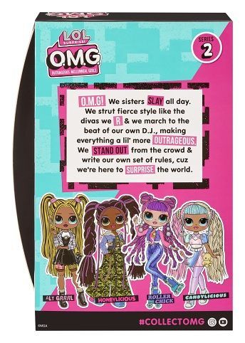 Rozbal OMG Velkou ségru a mnoho překvapení! Velké ségry milují módu, mají překrásné vlasy a každá z nich má svůj osobitý styl! Získej znovu OMG Velké ségry z druhé série ve zcela novém průhledném balení. Můžeš sesbírat 4 panenky. Obsah balení: • 1 L.O.L. Surprise! Velká ségra s ohebnými klouby na nohou a rukou a s odnímatelnýma rukama v zápěstí pro snadnější převlékání • mnoho překvapení