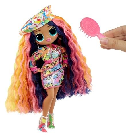 OMG Velká ségra má ohromující rysy, krásné vlasy a svůj vlastní báječný styl. Jsou velkými sestrami ke svým mladším sestřičkám – klasickým L.O.L. panenkám. Obal rozložíš v praktickou šatnu, se kterou si můžeš opakovaně hrát. Obsah balení: • 1 OMG Velká ségra s ohebnými klouby na nohou a rukou a s odnímatelnýma rukama v zápěstí pro snadnější převlékání • mnoho překvapení v každém balení, např.: boty, doplňky, outfit, stojánek na panenku a další • 1 obal, který je možné použít jako šatnu pro OMG Velkou ségru nebo pro 4 L.O.L. panenky