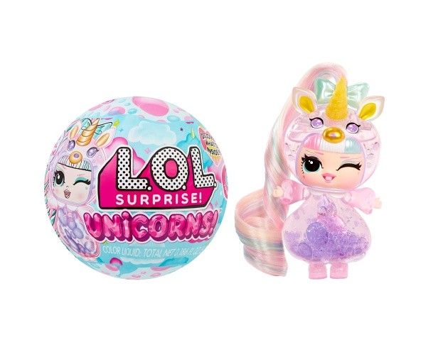 L.O.L. Surprise! panenka s průhledným tělem a hlavou ve tvaru jednorožce. V balení najdeš 2 lahvičky s tekutinou k naplnění těla. Po naplnění budou v panence klouzat barevné bubliny a panenka bude vyvolávat efekt lávové lampy.Obsah balení:?1 panenka s průhledným tělem2 lahvičky s barevnou tekutinoučesatelné vlásky k připnutíV sérii můžeš sesbírat 8 panenek.