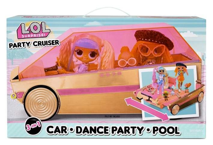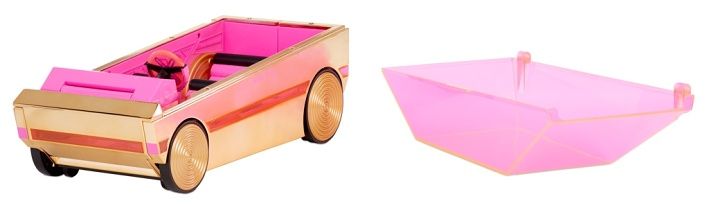 L.O.L. Surprise! Párty auto je úžasné auto 3v1. Je to klasické auto, ale najdeš v něm také taneční parket a bazén. Obsah balení: • 1 Párty auto 3v1 (auto, taneční parket, bazén) • barva auta – růžové zlato s chomovým > povrchem • auto je vhodné pro 4 OMG panenky • odnímatelná střecha se stane bazénem • 4 svítilny na UV světlo • sedadla jsou odnímatelná Balení se dodává bez panenky. Na baterie: 12x LR41 (nejsou součástí balení)