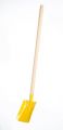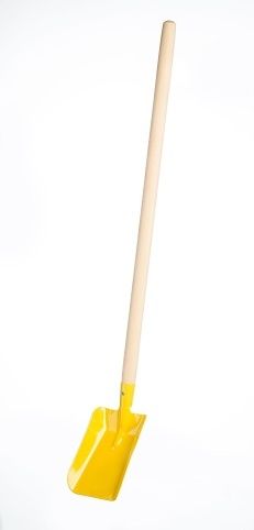 Žlutá kovová lopatka s dřevěnou násadou o délce 80 cm je připravena pro všechny malé stavitele a zahradníky.