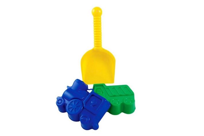 Sada obsahuje lopatku (22 cm) a 2 bábovky (lokomotiva, auto - 9 x 12,5 cm).