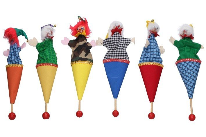 Loutka klaun. Velikost 27 cm. Dřevo a textil. více variant