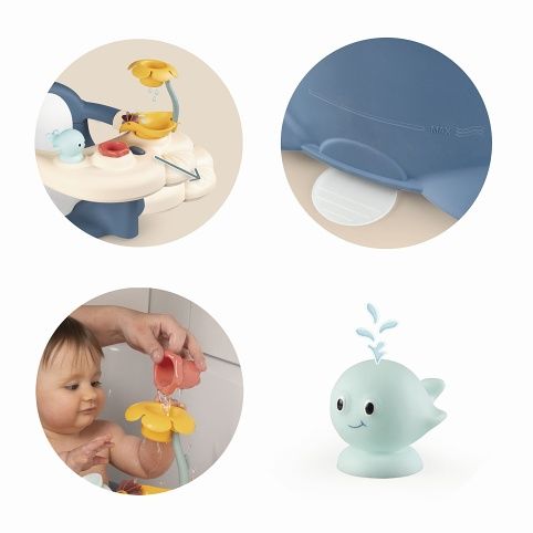 Rostoucí sedátko do vany 2 v 1 v modrém provedení nabízí pro nejmenší skvělou zábavu při koupání a maximální bezpečnost. Ergonomický tvar s měkkým sedákem a oblé tvary bez hran zajistí spoustu pohodlí. Pro snazší uložení dítěte lze pultík s aktivitami posunout dopředu díky promyšlenému bezpečnostnímu systému. Od 6 do 16 měsíců může vaše dítě objevovat herní možností s květinou a roztomilou postavičkou stříkající vodu. Čtyři přísavky zajišťují bezpečné uchycení ve vaně. Vysoce kvalitní plast a vynikající zpracování zaručují nejvyšší kvalitu. Rozměry (DxŠxV): 42 x 34 x 25 cm. Nosnost: 6-13 kg.