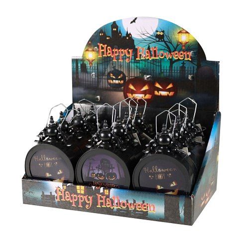 Halloweenské svítidlo na tu pravou Halloween párty! Plastová lampička je funkční na 3 baterie typu LR1130 (baterie jsou součástí balení). Stačí jen přepnout přepínač ve spodní části. Lampička po zapnutí bliká různými barvami, které se samy přepínají. Velikost lampičky je cca 13 cm. Prodej pouze po celém balení 12 ks.