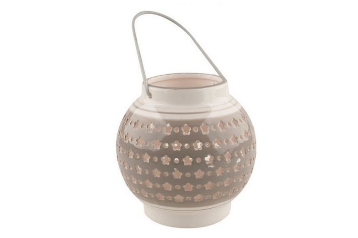 Lucerna keramická šedá s bílým dekorem 11,3cm