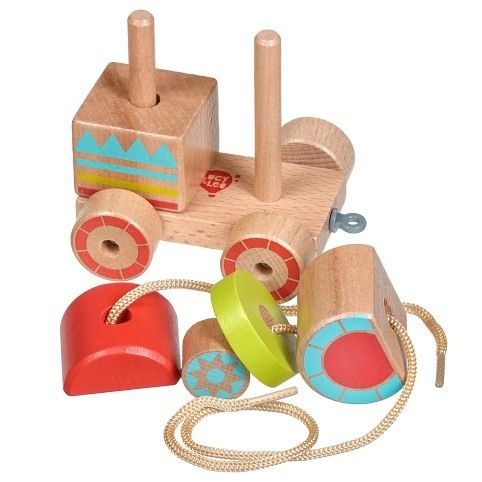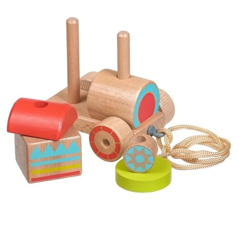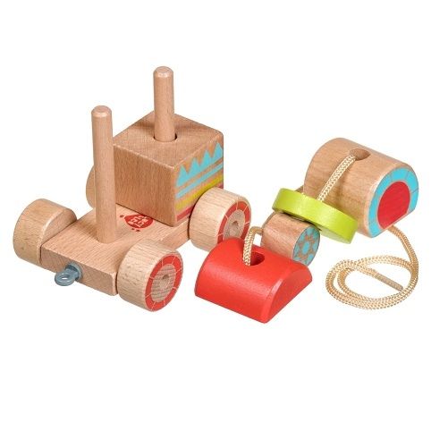 Dřevěná tahací mašinka je dřevěná skládačka s 6 barevnými díly, které je třeba poskládat tak, aby mašinka mohla vyrazit na cesty. Praktický provázek umožňuje hračku táhnout a vzít s sebou kamkoli. Tato vzdělávací hračka má pozitivní vliv na logické myšlení, obratnost a pohybové dovednosti dítěte. Výška složeného vlaku 9 cm, délka 11 cm, rozměry dílků vlaku cca 4,5 x 4 cm. Délka provázku 45 cm.