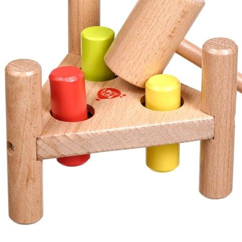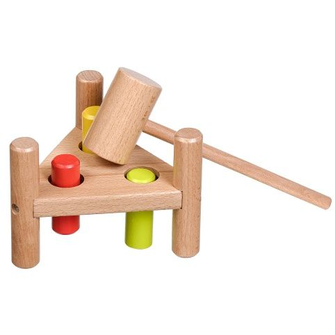 Trojúhelník je dřevěná zatloukačka vyrobená v netradičním tvaru trojúhelníku, která je zábavnou hrou pro kluky i holky. Dřevěná deska má tři otvory, do kterých se kladívkem zatloukají barevné kolíky. Po zatlučení všech kolíků se stojánek otočí a může se začít opět zatloukat. Hračka slouží k rozvoji jemné motoriky, koncentrace a koordinaci pohybu.