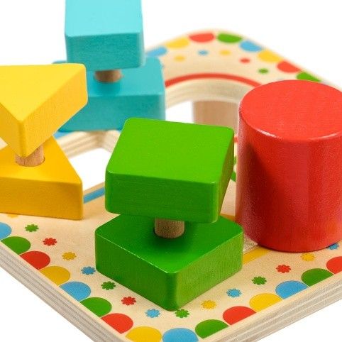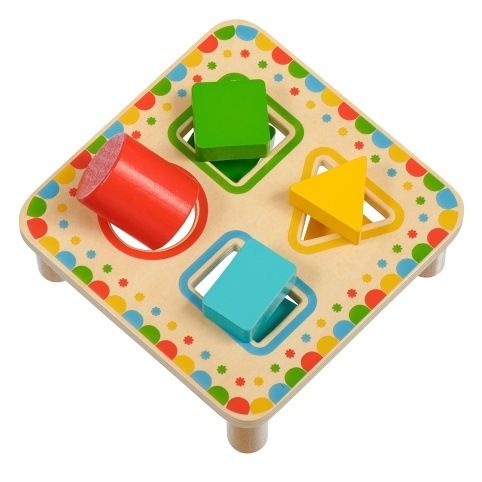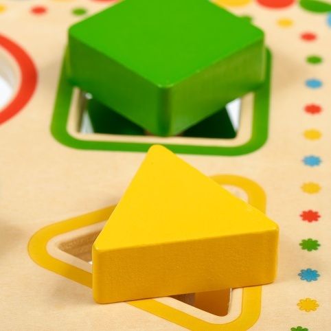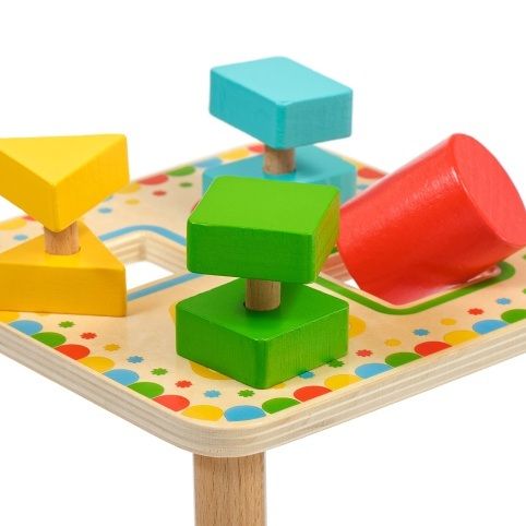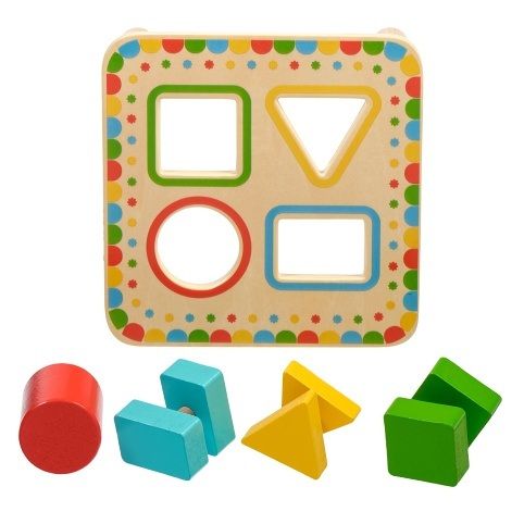 Třídění geometrických tvarů není jen běžná dřevěná vkládačka, která učí děti poznávat základní geometrické tvary a barvy. Hra má totiž tři důmyslné dvoudílné vkládací prvky. Dítě tedy bude muset nejprve tyto prvky roztřídit a přiřadit k odpovídajícím otvorům a následně najít způsob, jak je skrz vybrané otvory prostrčit. Dvoudílné prvky je totiž třeba při průchodu deskou po prvním vsunutí správně pootočit, aby prošel skrz otvor celý vkládací prvek. Tato činnost bude vyžadovat u dětí více logického myšlení a kombinace těchto úkolů je pro děti větší výzvou a je skvělá na podporu motorické zručnosti a trpělivosti. Hra obsahuje dřevěnou desku na nožičkách se 4 barevně orámovanými otvory, 3 dvoudílné vkládací prvky se základními geometrickými tvary a jeden válec. Prvky jsou ve 4 barvách, které korespondují s rámečky na vkládací desce. Rozměry desky: délka 16 cm, šířka 16 cm, výška 6 cm. Rozměry tvarů cca 4,5 cm x 4 cm.