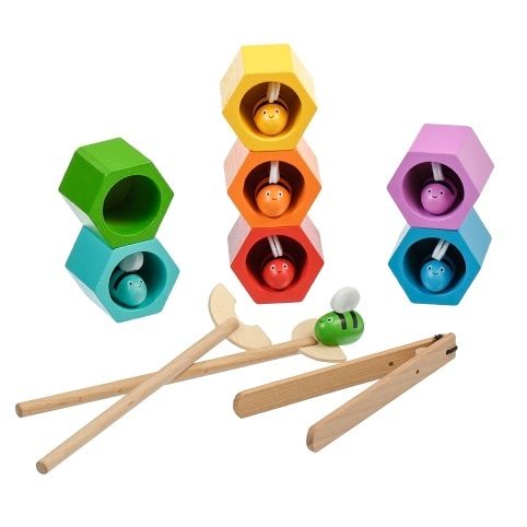 Včelí úly je dřevěná motorická hračka, která se skládá ze 7 barevných včelích úlků, 7 barevných včeliček, pinzety a kleští. Cílem hry je umístit včelky pomocí jedné z pomůcek do úlu požadované barvy. Úly lze poskládat pokaždé jinak, takže děti musí dávat pozor, která barva úlu se kde nachází. Mladší děti mohou včelky vkládat pomocí svých prstíků. Tato edukativní hračka zábavnou formou procvičuje především znalost barev, velmi intenzivně rozvíjí jemnou dětskou motoriku, koordinaci, trpělivost. Za asistence dospělých se při této hře mohou děti také naučit něco zajímavého o životě včel. Tato hračka je označována jako Montessori pomůcka. Rozměr včelí komůrky délka 5 cm, šířka 4 cm. Délka včelky 3 cm, šířka 2 cm. Velikost včelařských nástrojů 13 cm a 18 cm.