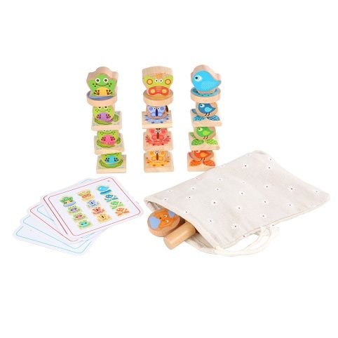 Malí přátelé je dřevěná balanční hra s předlohami, která se skládá z 33 dřevěných bloků různých tvarů s barevnými obrázky. Cílem hry je naskládat dřevěné kostky se žabkami, motýlky a ptáčky na sebe tak, aby se udržely v rovnováze a nespadly. Bloky mají zaoblené hrany, aby se s nimi příjemně manipulovalo. Tato sada je skvělá pro zlepšení koordinace, motoriky a trpělivosti. Součástí výrobku je lněný pytlík, do kterého si sadu pěkně uložíte a lze ji vzít kamkoli s sebou. Průměry dřevěných bloků cca 3,5 cm, 4 cm a 4,5 cm.