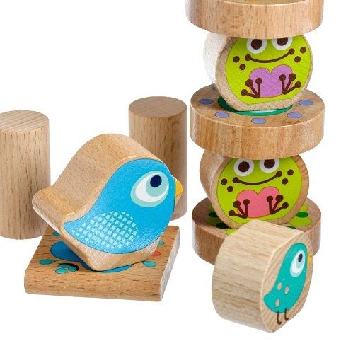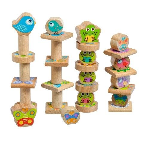 Malí přátelé je dřevěná balanční hra s předlohami, která se skládá z 33 dřevěných bloků různých tvarů s barevnými obrázky. Cílem hry je naskládat dřevěné kostky se žabkami, motýlky a ptáčky na sebe tak, aby se udržely v rovnováze a nespadly. Bloky mají zaoblené hrany, aby se s nimi příjemně manipulovalo. Tato sada je skvělá pro zlepšení koordinace, motoriky a trpělivosti. Součástí výrobku je lněný pytlík, do kterého si sadu pěkně uložíte a lze ji vzít kamkoli s sebou. Průměry dřevěných bloků cca 3,5 cm, 4 cm a 4,5 cm.