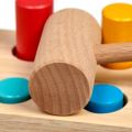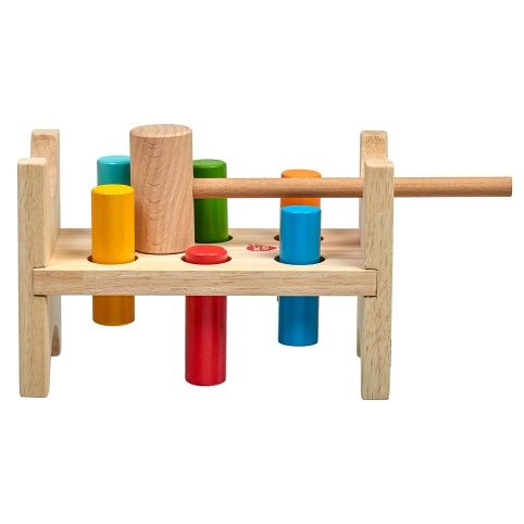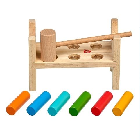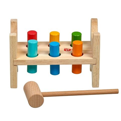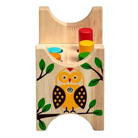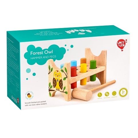 Lesní sova je klasická dřevěná zatloukačka s barevným veselým obrázkem pro kluky i holky. Má dřevěnou desku s šesti otvory a kladívko, které slouží pro nácvik zatloukání 6ti barevných kolíků. Po zatlučení všech kolíků se stojánek otočí a může se začít opět zatloukat. Hračka slouží k rozvoji jemné motoriky, koncentrace a především koordinaci pohybu. Rozměry stojánku 13,8 x 8,5 x 9,3 cm.