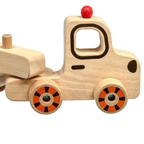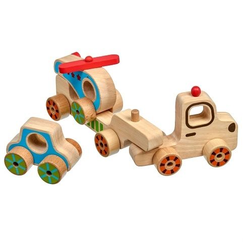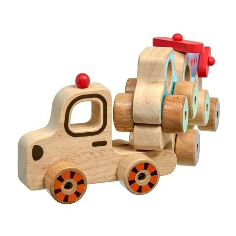 Můj první kamion je dřevěná skládačka pro nejmenší. Malé dítě si může samostatně hrát s kamionem a jeho přívěsem, vrtulníkem nebo malým autíčkem. Po ukončení hry je auto s vrtulníkem třeba poskládat tak, aby je kamion mohl hromadně převézt.