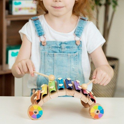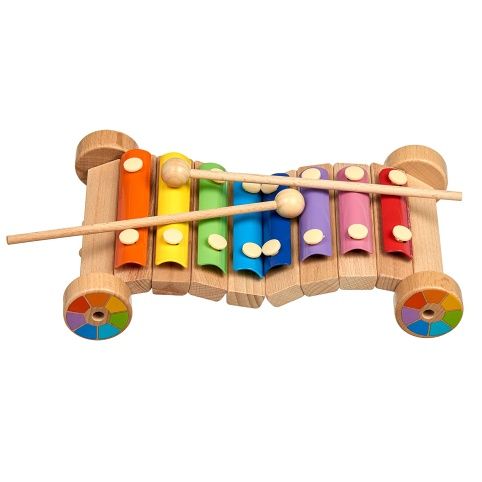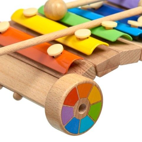 Duhový xylofon je veselý vícebarevný xylofon, který přinese do vašeho domova spoustu zábavných chvil. Dítě se naučí rozeznávat jednotlivé zvuky, spojovat zvukové tóny v melodii a s pomocí dospělých se může rozvíjet i jeho vztah k hudbě. Dřevěná základna vzdělávací hračky je vyrobena ze dřeva, destičky jsou vyrobeny z tenkého kovu. Sada je dodávána se dvěmi dřevěnými paličkami. Barevný xylofon doplňují kolečka v barvách duhy. Všechny díly jsou upevněny maximálně bezpečně, dítě je rozhodně neodtrhne. Pokud považujete kreativní rozvoj předškoláka za důležitý, nezapomeňte se zásobit hudebními hračkami, děti zvuky milují.