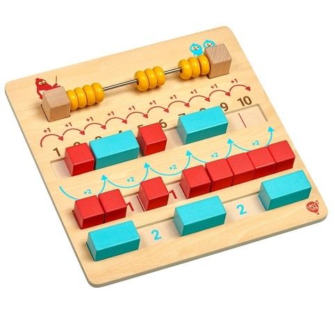 Moje první matematická hra je dřevěná herní sada, která pomůže vašemu dítěti udělat první a základní kroky v matematice pomocí hry. Sada se skládá z hladké dřevěné desky, která má nahoře počítadlo a dole 3 obdélníkové drážky. V drážkách je umístěno 10 červených kostek a 5 modrých kvádrů určených k učení základních počtů. Postupujte podle pokynů na desce a jednoduše je umístěte do speciálních počítacích drážek. Tato hrací deska se stane velkým pomocníkem každému dítěti. Rozměr desky 28 cm x 27,5 cm. Rozměr kostek 2,3 cm x 2,3 cm. Rozměr kvádrů 4,6 cm x 2,3 cm.