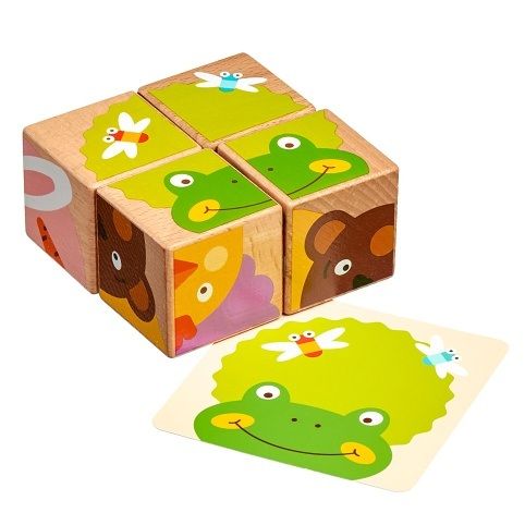 Co zvířátka jedí jsou dřevěné skládací obrázkové kostky s předlohami, ze kterých je možné složit 6 různých obrázků se zvířátky a jejich pamlsky. Hra byla vytvořena především pro malé děti, které začínají skládat své první obrázky. Tomu odpovídá i počet kostek a grafické zpracování. Hra dětem pomáhá procvičit si znalost barev a podporuje motorické schopnosti, obratnost a logické myšlení. Rozměr kostek 4,5 x 4,5 x 4,5 cm.
