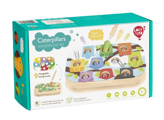 Lucy & Leo 261 Chytání housenek – dřevěná motorická stolní hra s magnety