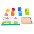 Jednoduchá geometrie je dřevěná hračka, která pomáhá dětem rozvíjet prostorové myšlení a logické uvažování. Sada obsahuje dřevěnou základnu s drážkami, dřevěné kostky různých barev a geometrických tvarů a karty s úkoly různých stupňů obtížnosti. Přeložte kartu šablony podél tečkované čáry a vložte ji do drážky v základně. Podle obrázku srovnejte geometrické tvary tak, abyste získali podobnou sestavu jako na obrázku. Rozměr základny s drážkami 16 cm x 16 cm x 1,5 cm - 1ks. Rozměr karet s úkoly 20 cm x 11 cm - 11 ks. Geometrické tvary s různými rozměry 7 ks.