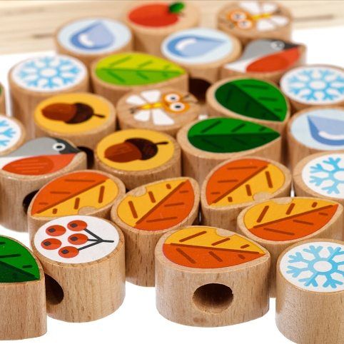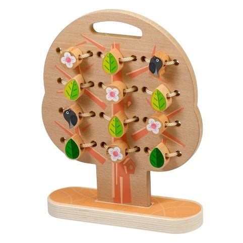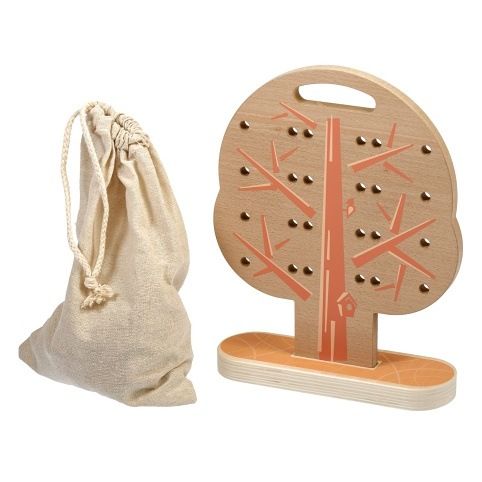 Strom je dřevěný šněrovací a provlékací set, který rozvíjí u dětí jemnou motoriku, kreativitu, estetické cítění a také podporuje znalost barev a rozlišování tvarů. Balení obsahuje samotný strom s otvory stojící na stojanu, čtyři tkaničky a širokou škálu dřevěných doplňků - listy, bobule, žaludy, hmyz, ovoce, sněhové vločky a jiné. Úkolem dítěte je využít jeho znalosti nebo fantazii a „obléknout“ strom za pomoci dřevěných doplňků, které na něj šněrováním musí upevnit. Stromeček si můžete vyrobit zimní, podzimní, jarní, letní, nebo se můžete vyřádit a smíchat všechna roční období najednou. Po skončení hry lze dřevěné doplňky a tkaničky umístit do lněného pytlíku, který je součástí balení. Tato hračka je označována jako Montessori pomůcka.