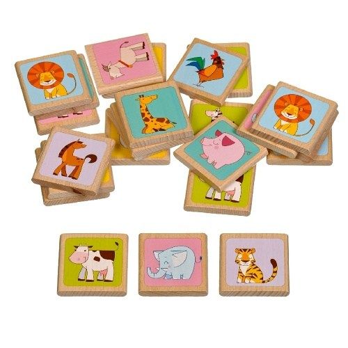 Dřevěné dětské pexeso s obrázky zvířátek bude určitě rádo hledat každé malé dítě. Balení tvoří 12 párů dřevěných obrázků zvířat. Po skončení hry lze kartičky uschovat ve lněném pytlíku. Pexeso pomáhá rozvíjet paměť a logické myšlení nenásilnou, hravou formou. Rozměry kartiček 4,5 cm x 4,5 cm x 0,8 cm.