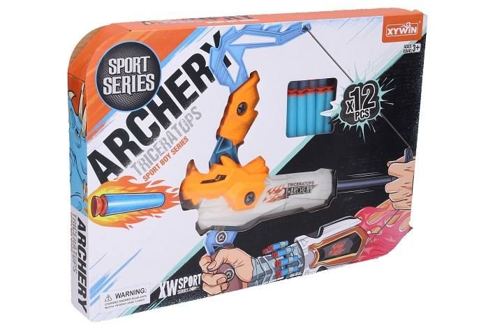 Luk na pěnové střely skládací. Délka složeného luku 50 cm. Balení obsahuje díly na složení luku, šroubky, šroubovák, 12 pěnových střel, 2x náramek na uložení střel, terč, samolepky na polepení luku.