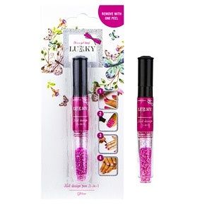Lak na nehty Lukky 2-v-1 obsahuje lak (6 ml) a třpytky (1,5 g). K odstranění laku není potřeba odlakovač. Lak jde jednoduše sloupnout. Lahvičku nelze vylít. Výrobek je vhodný pro děti od 3 let.