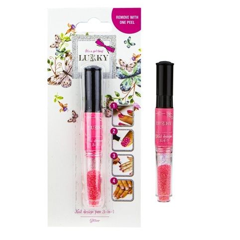 Lak na nehty Lukky 2-v-1 obsahuje lak (6 ml) a třpytky (1,5 g). K odstranění laku není potřeba odlakovač. Lak jde jednoduše sloupnout. Lahvičku nelze vylít. Výrobek je vhodný pro děti od 3 let.