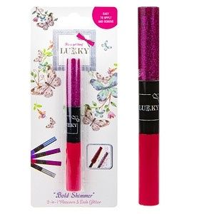 2-v-1 řasenka a třpytky na řasy Lukky. Snadno odstranitelné. Objem 10 ml. Vhodné pro děti od 3 let.