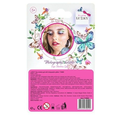 Gelové oční stíny Lukky s holografickými třpytkami a štětcem. Vhodné pro děti od 3 let.