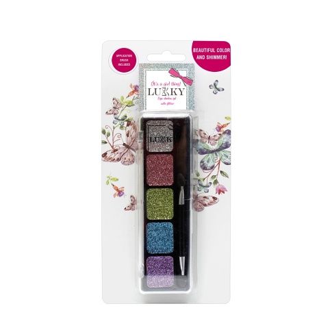 Gelové oční stíny Lukky se třpytkami a štětečkem v 5 různých odstínech. Vhodné pro děti od 3 let.