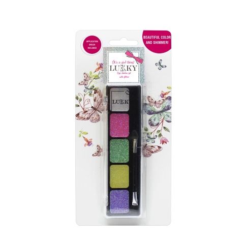 Gelové oční stíny Lukky se třpytkami a štětečkem v 5 různých odstínech. Vhodné pro děti od 3 let.