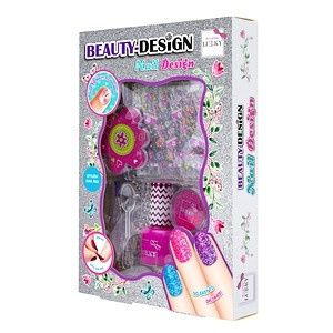 Sada Beauty-Design “Nehtové studio”. Obsah: 1× štětec, 1× pilník na nehty, 1× samolepky na nehty, 1× slupovací lak, 1× dózička se třpytkami, 1× lžička. Proděti od 3let