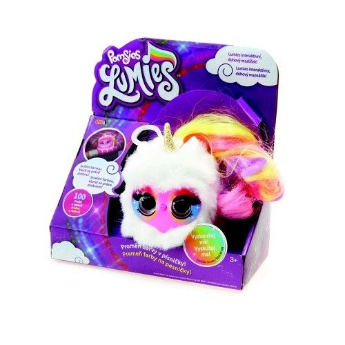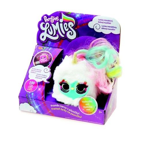 Lumies je interaktivní plyšové zvířátko. Má 100 různých zvuků a reakcí. Zmáčkněte mu nos a užijte si 4 zábavné hrací módy. Položte Lumies na svou oblíbenou barvu a on ji pozná. Rozsvítí se zrovna takovou barvou. Lumies prostě barvy miluje. Mění barvy, mluví o barvách. Nebo můžete proměnit jeho barvy v melodie. Navíc má krásné duhové lásky, které můžeš učesat přiloženým hřebínkem. Vyžaduje 3 x AAA baterie, jsou součástí balení. Balení obsahuje: Lumies a hřebínek. Pro děti od 3 let. Na baterie: 3x AAA (jsou součástí balení)