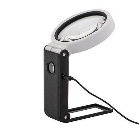 Praktická ruční/stolní lupa v jednom, s velkým zorným polem a LED osvětlením. Kvalitní akrylová čočka o průměru 9 cm poskytuje 2,5 násobné zvětšení a malá přídavná čočka o průměru 1,9 mm poskytuje 10 násobné zvětšení.