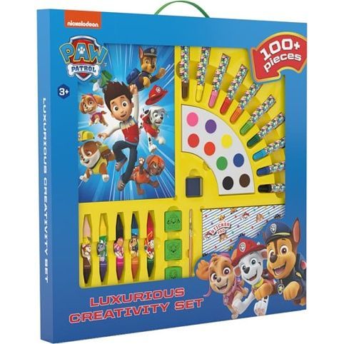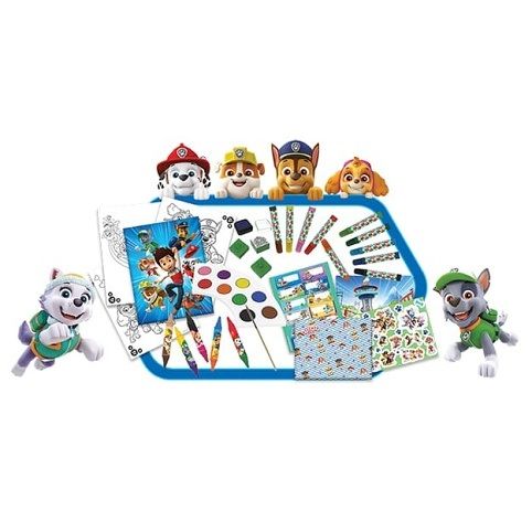 Set obsahuje 10 barevných fixů, 5 oboustranných voskovek, 9 vodovek, 3 pěnová razítka, sešit s omalovánkami, sešit se samolepkami, štětec, inkoustovou podušku a 3 obrázky k vystřihnutí.