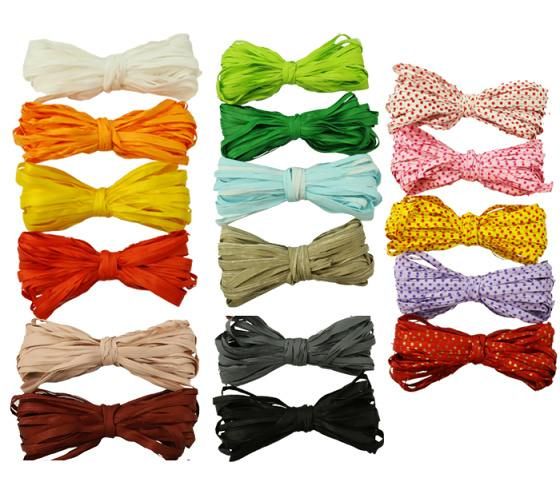 Umělé lýko Raphia je pevný ozdobný vázací materiál z polypropylenu. Šíře: 1,6cm Mix barev