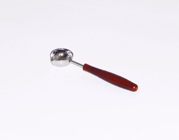 Ocelová lžíce s dřevěnou rukojetí, ideální pro nahřívání pečetícího vosku a následné tvorby pečetí.