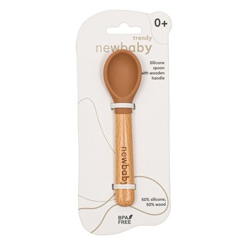 "Dětská lžička z řady New Baby Trendy spojuje moderní design s praktičností. Kombinace dřevěné rukojeti s elegantním gravírováním loga značky a nejkvalitnějšího silikonu bez BPA zaručuje bezpečnost a komfort při krmení vašeho miminka.