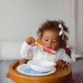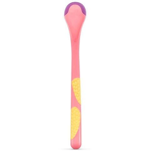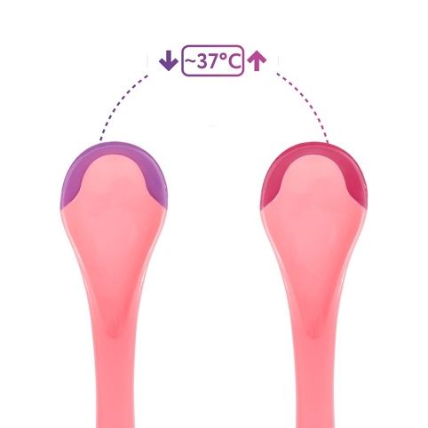 Lžička termosenstitivní růžová 4m+ – vyrobeno z prémiového materiálu, neobsahuje změkčovadla, ergonomický tvar. Při zahřátí na 37 stupňů C mění barvu, tím poznáte, že jídlo pro miminko má správnou teplotu.