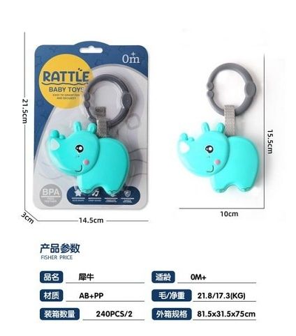 Chrastítko nosorožec. Rozměry 14,5x3x21,5 cm.