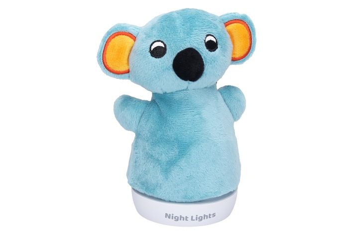 Maamaa Lampička noční koala usínáček plyšový. Rozměry 11x8x15,5 cm. Aktivace přepínačem na spodní straně lampičky. Automaticky se měnící barevné světýlko (7 barev). 3xAAA baterie, nejsou součástí.