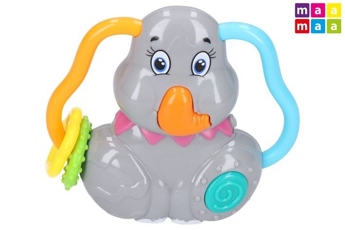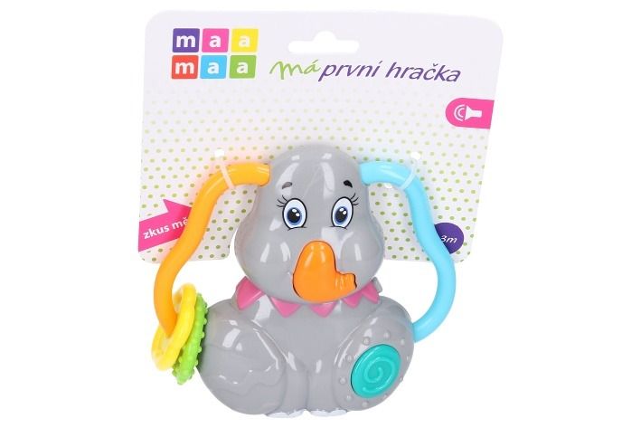 Maamaa Slon s efekty 12cm. Světelné a zvukové efekt oranžovým tlačítkem. 3xAG13 baterie součástí. Přepínač ON/OFF.
