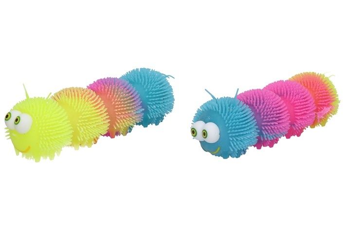 Mačkací housenka. Velikost 25 cm. Se světelnými efekty, blikající. 3xAG3 baterie, nelze měnit. Display box - 6ks.